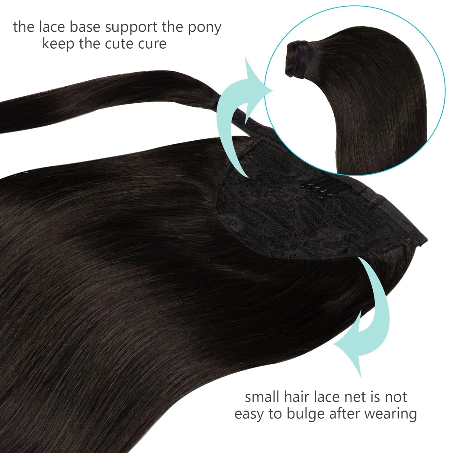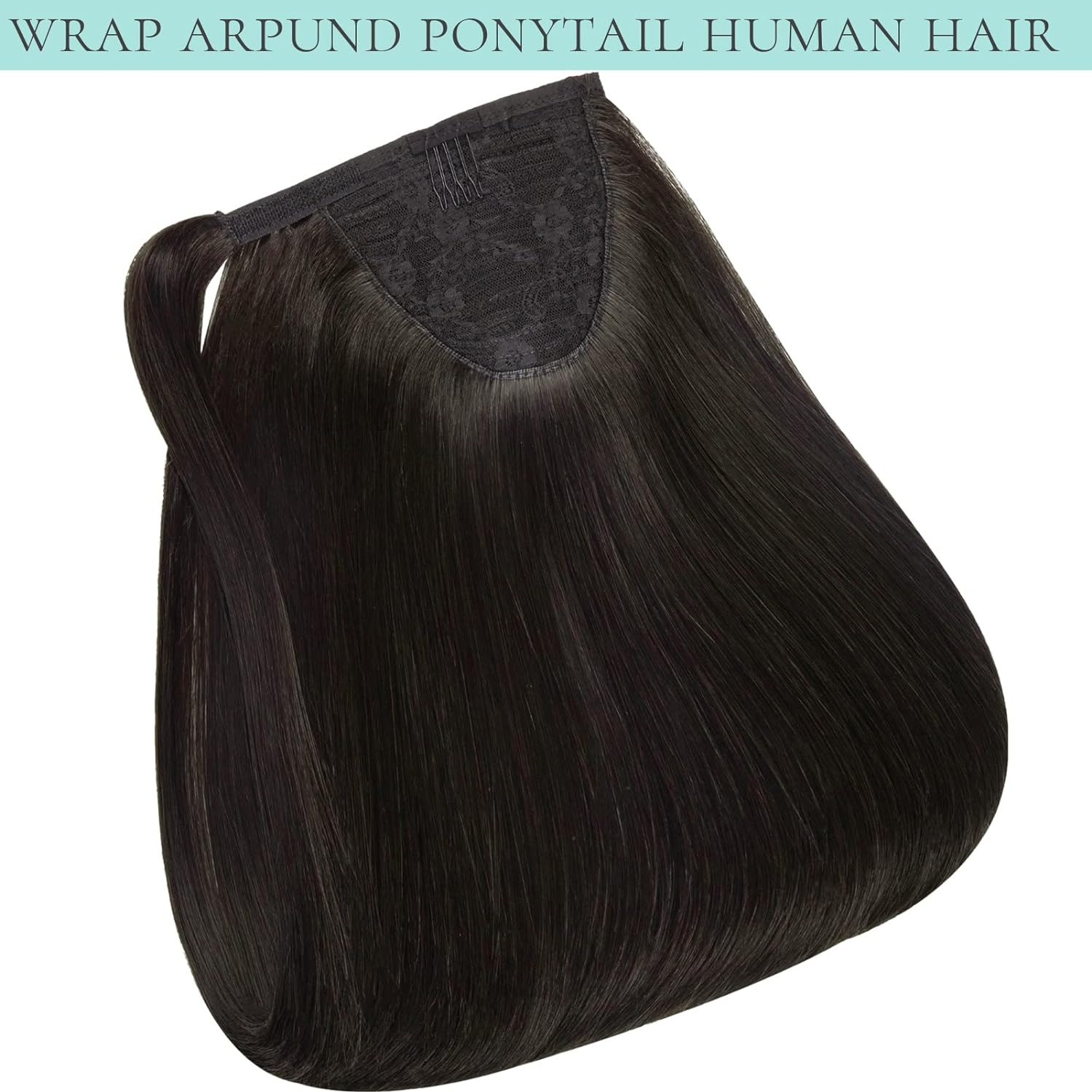 - 3.This wrap around ponytail human hair super easy to wear and stay on securely. Just wrap it around your own ponytail and you will get a long thick pony tail.