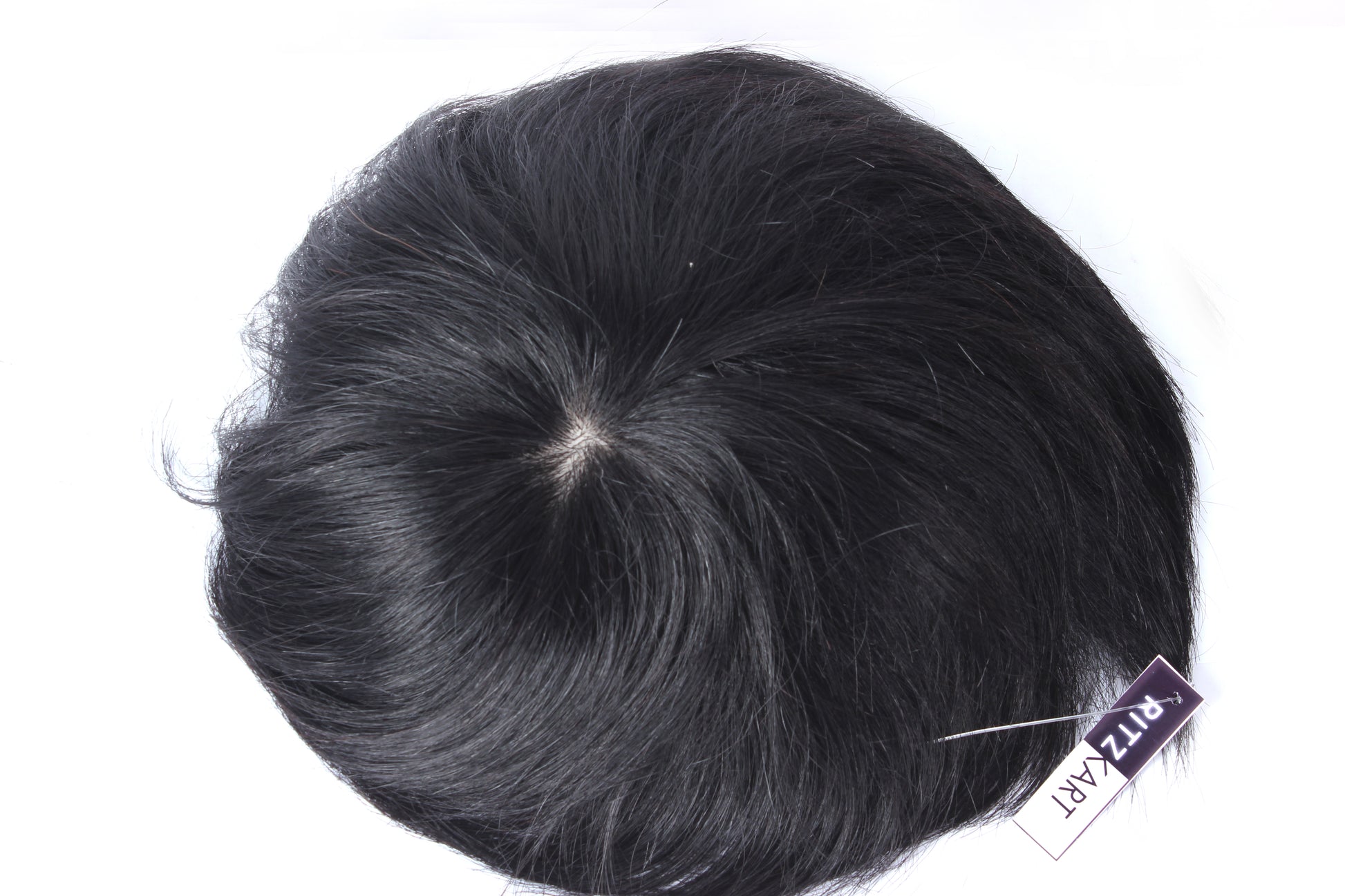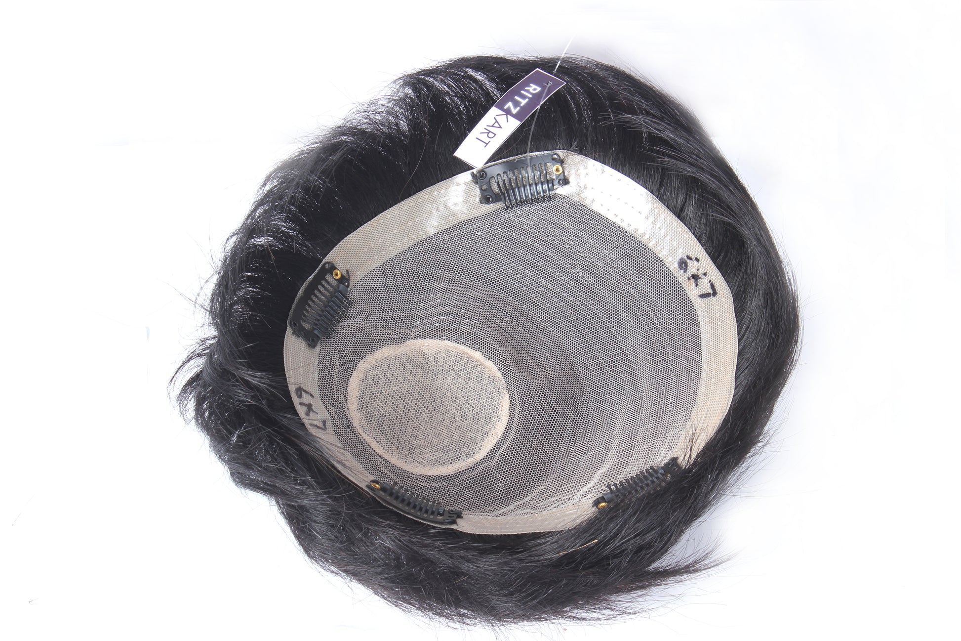 Ritzkart 6x7 Size Skin Base Clip On Soft Real Human Hair Men Topper a Perfect Hairpiece For Covered Top Bald Area