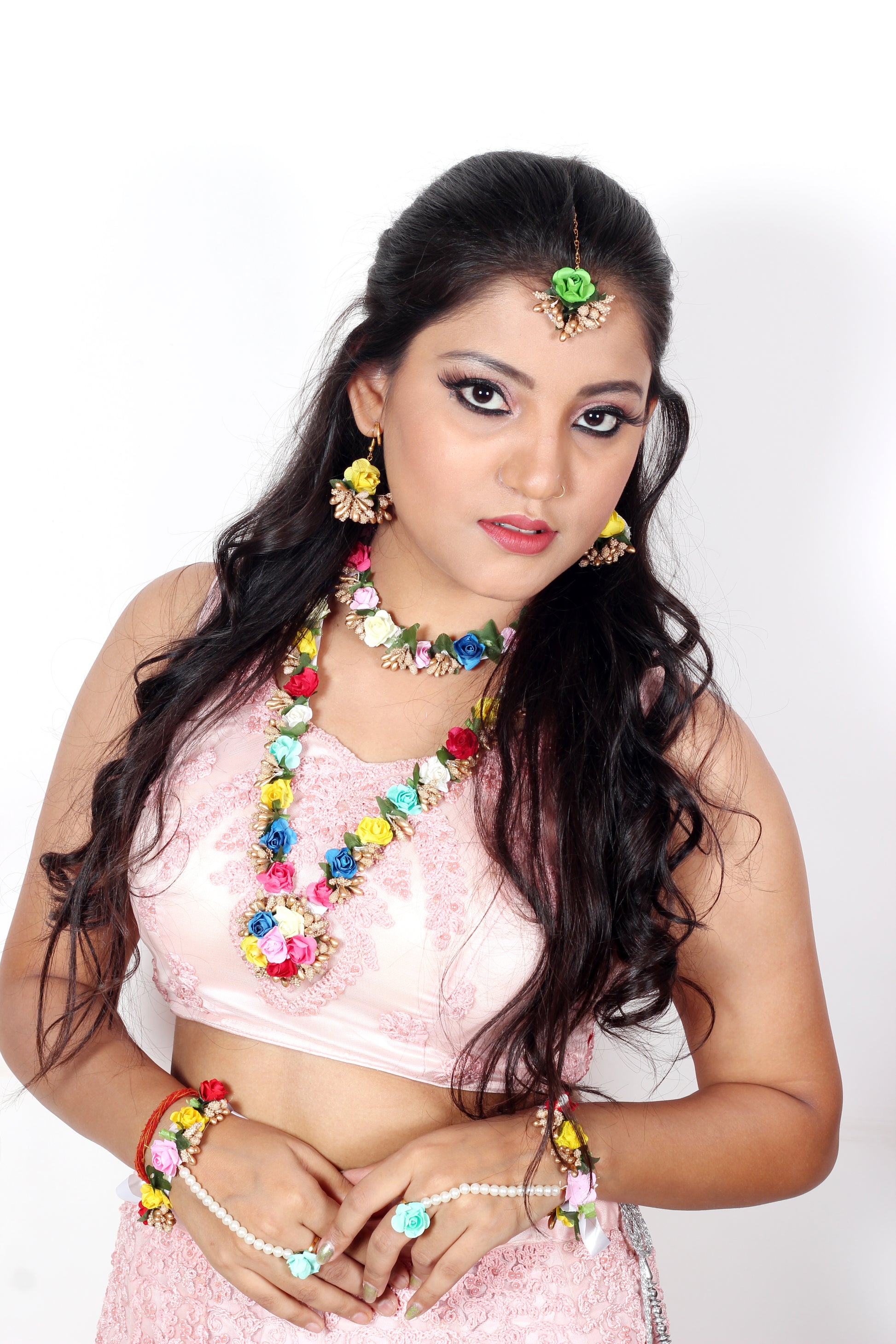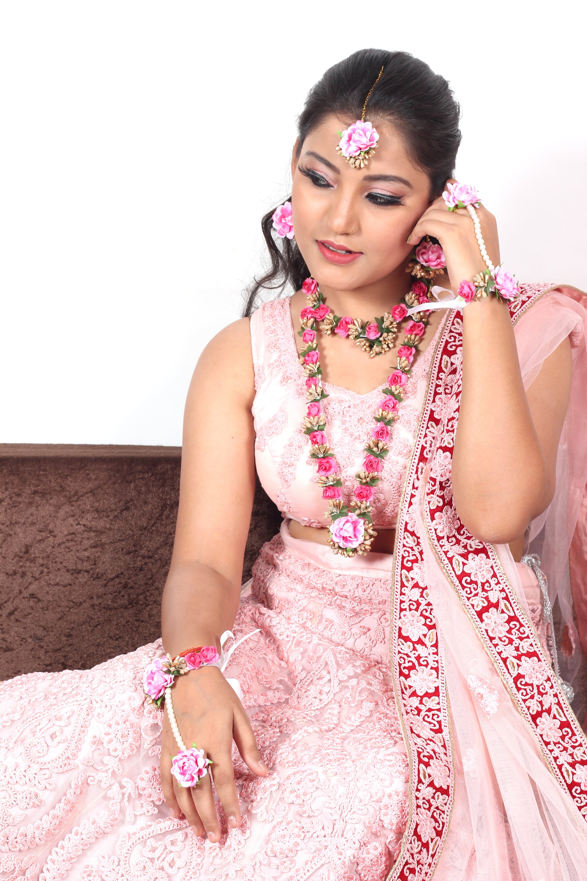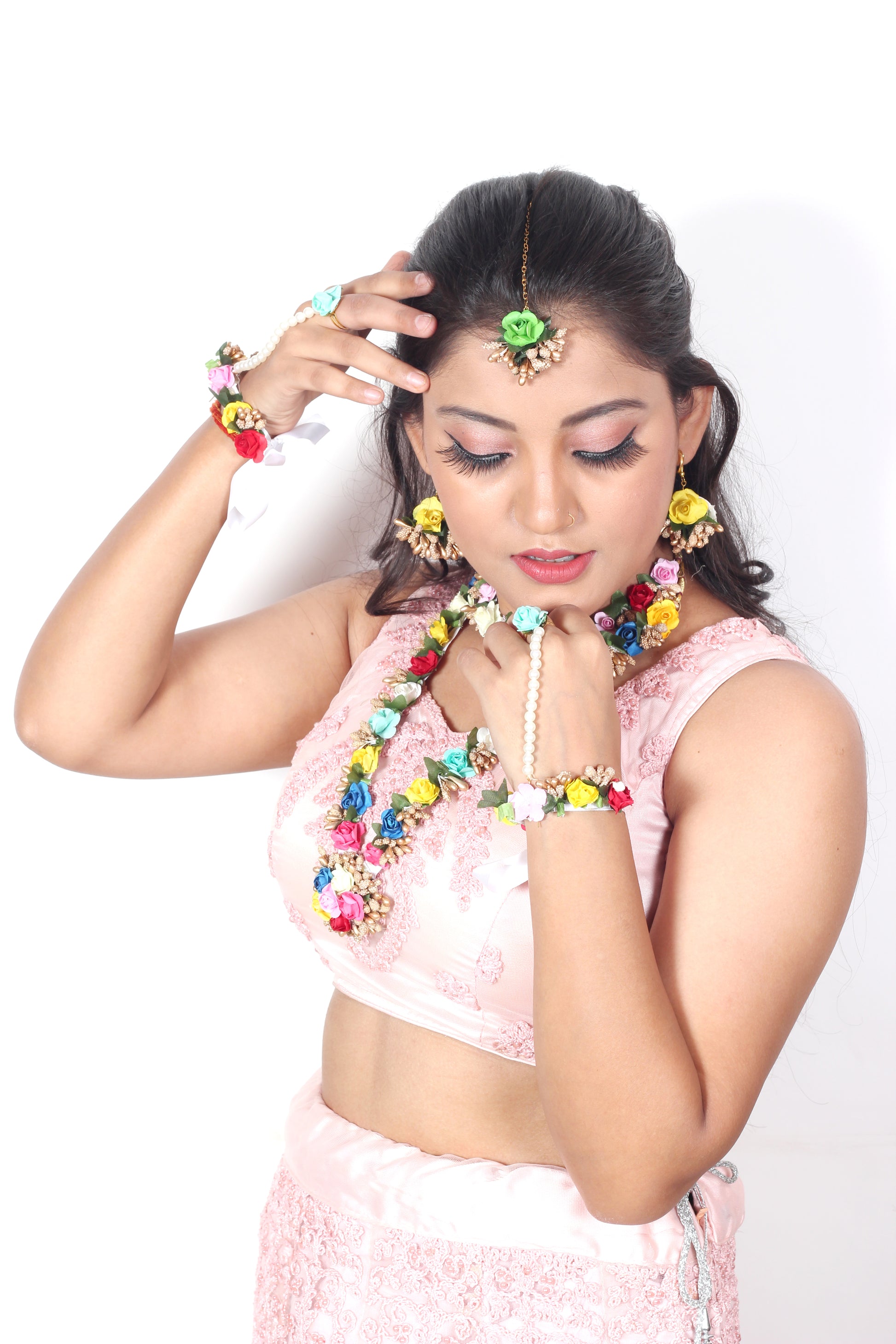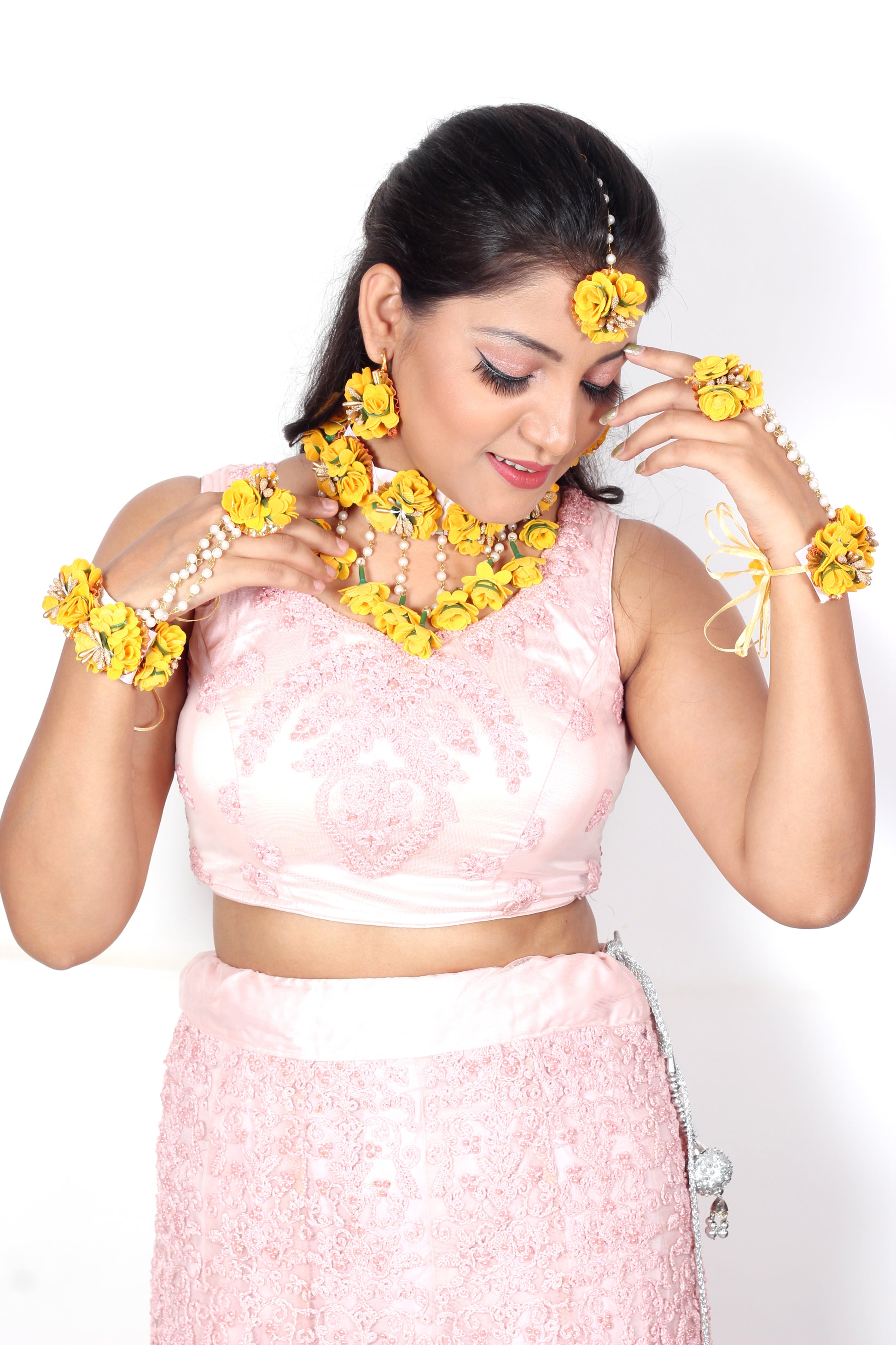 Celebrate everlasting feelings of love with this exquisite Flower jewelry set . This flower jewelry is an elegant representation of a timeless bond of love and affection that connects two people. Elegant and classy, this is our hand made jewelry that makes it a beautiful gift option for your beloved ones. flower Jewelry has become a craze to offbeat Wedding, Mehendi, Haldi or Baby Shower function all over the world. Most of the brides prefer it for pre wedding photo shoot. It has been in use for bridal jewelry since 15th Century. The ethnic Gotta Jewelry items are handcrafted by skilled artisans . flower is a well known Brand in manufacturing of finest quality, light weight, handmade flower jewelry. Our designs are unique, sober and traditional. The in-house traditional jewelry designers have the best collection as most of the products are inspired from the contemporary as well as traditional jewelry trends/designs.