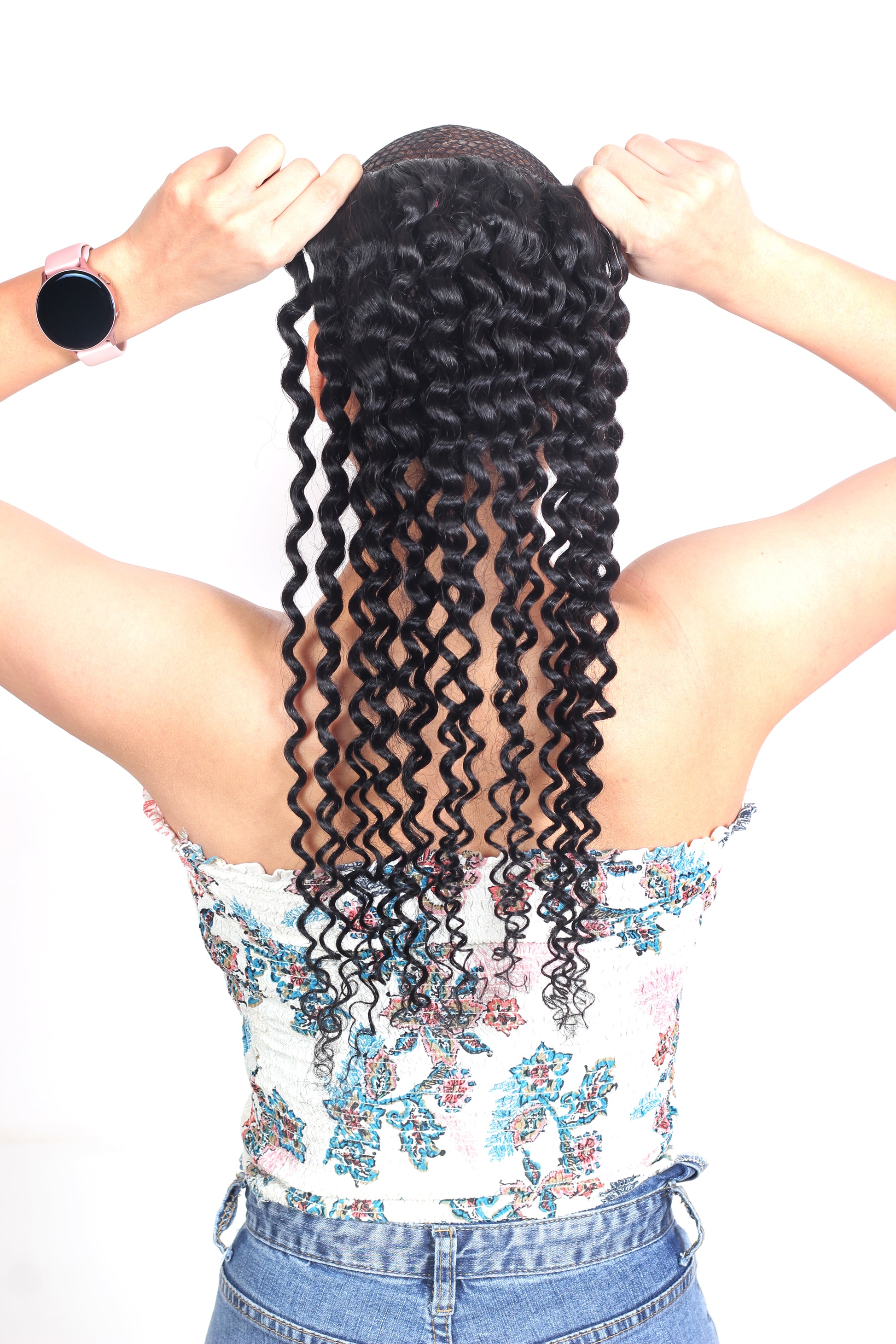 Ritzkart Kinky Curly Black color 100gm Human hair extension Natural curly Latest women Fashionable Clip on Hair extension