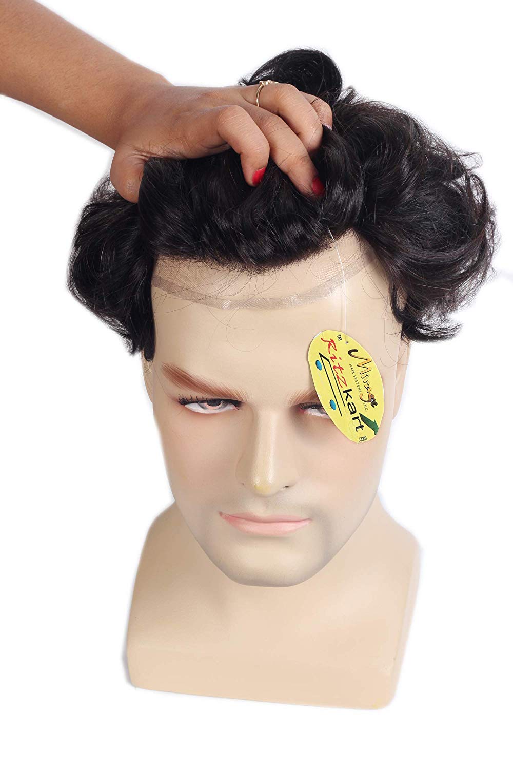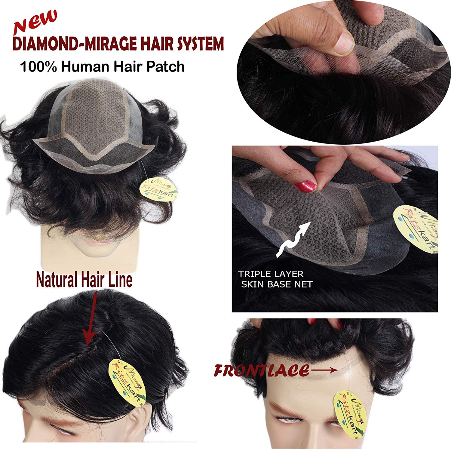 Ritzkart Natural Black (Dark Brown) Human Hair DIAMOND Mirage Patch Triple Layer Skin Base Net Natural Hair Line Non Surgical Men Hair Replacement System For Long life