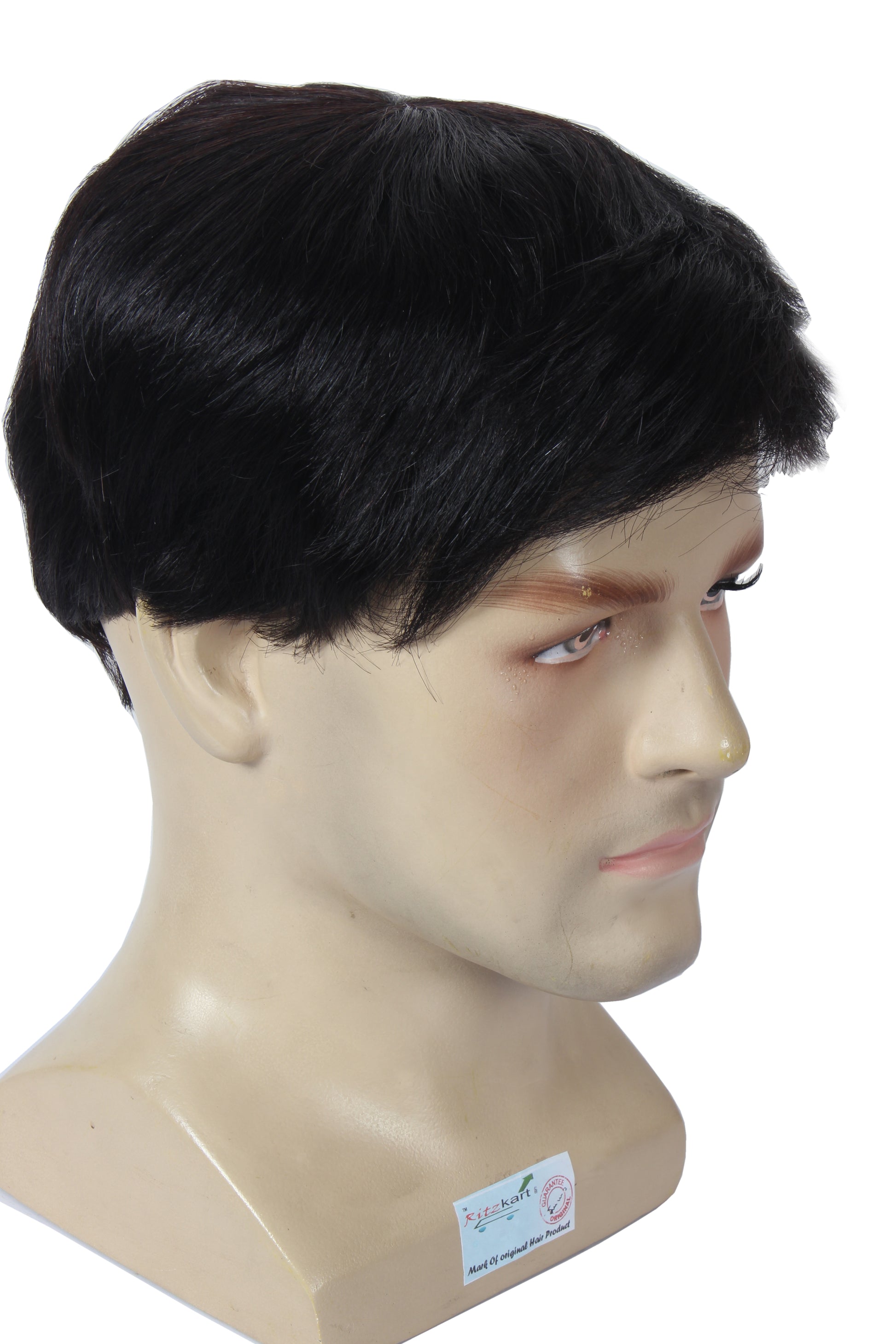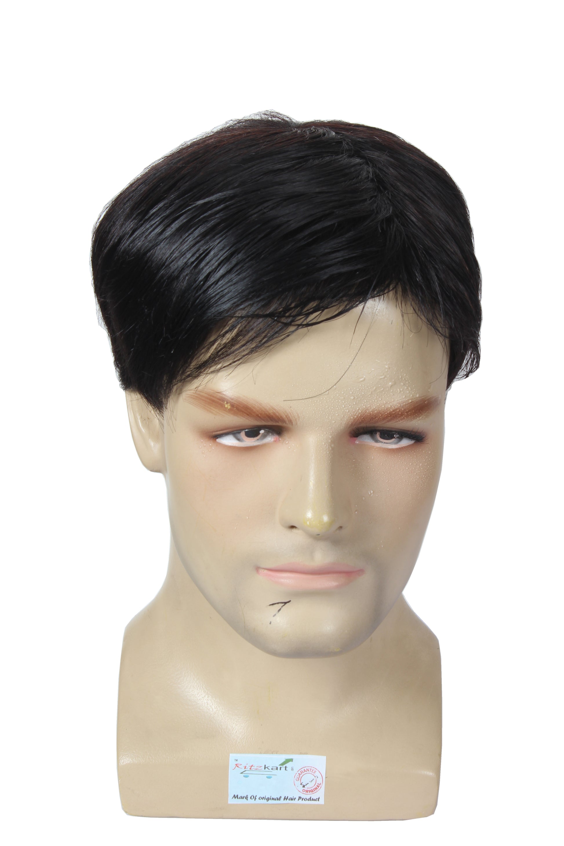 Ritzkart Short Black 100% Men's Soft Human Hair With Adjustable clips Glue-less Full Head high-quality Hair Wig For Men