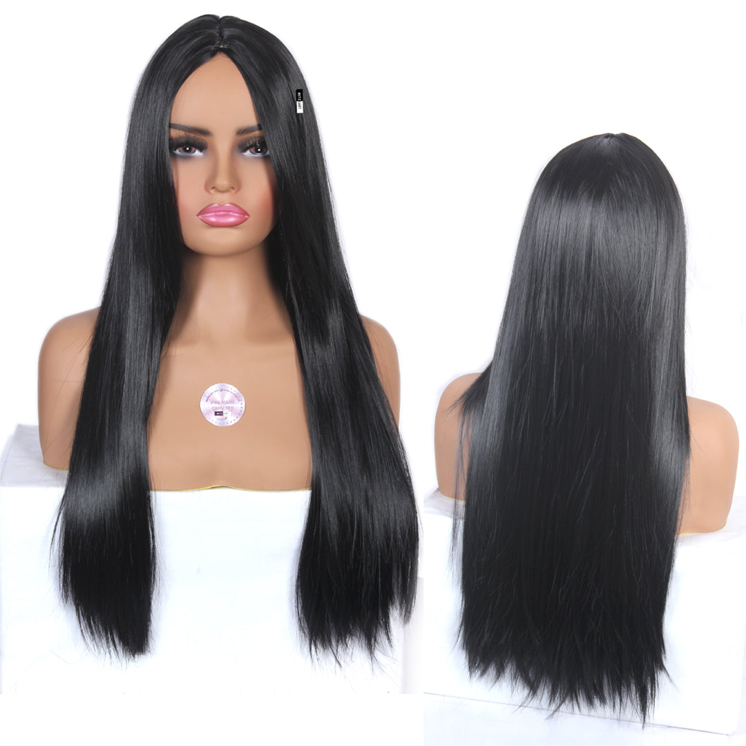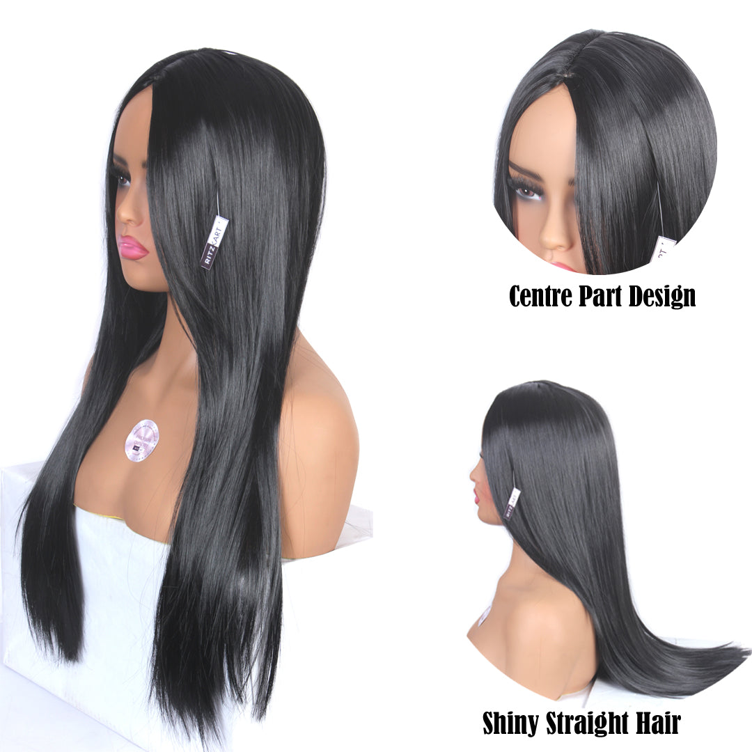 Straight Hair Wig for Women 28-Inch Shiny Synthetic Long Wig with Natural Centre Part, Soft & Silky Texture for a Glamorous Look