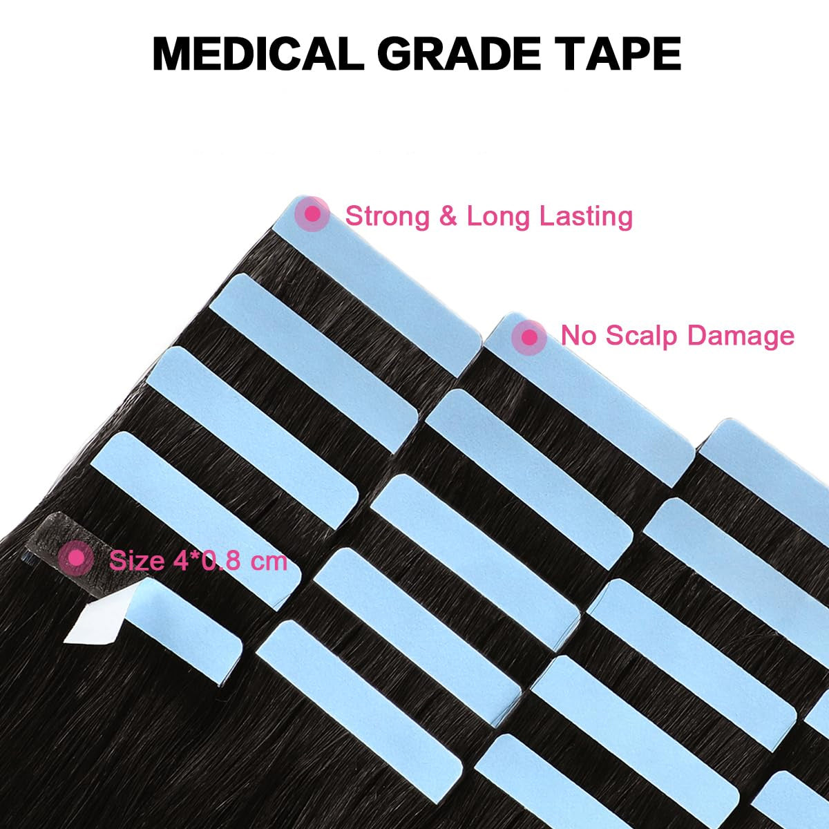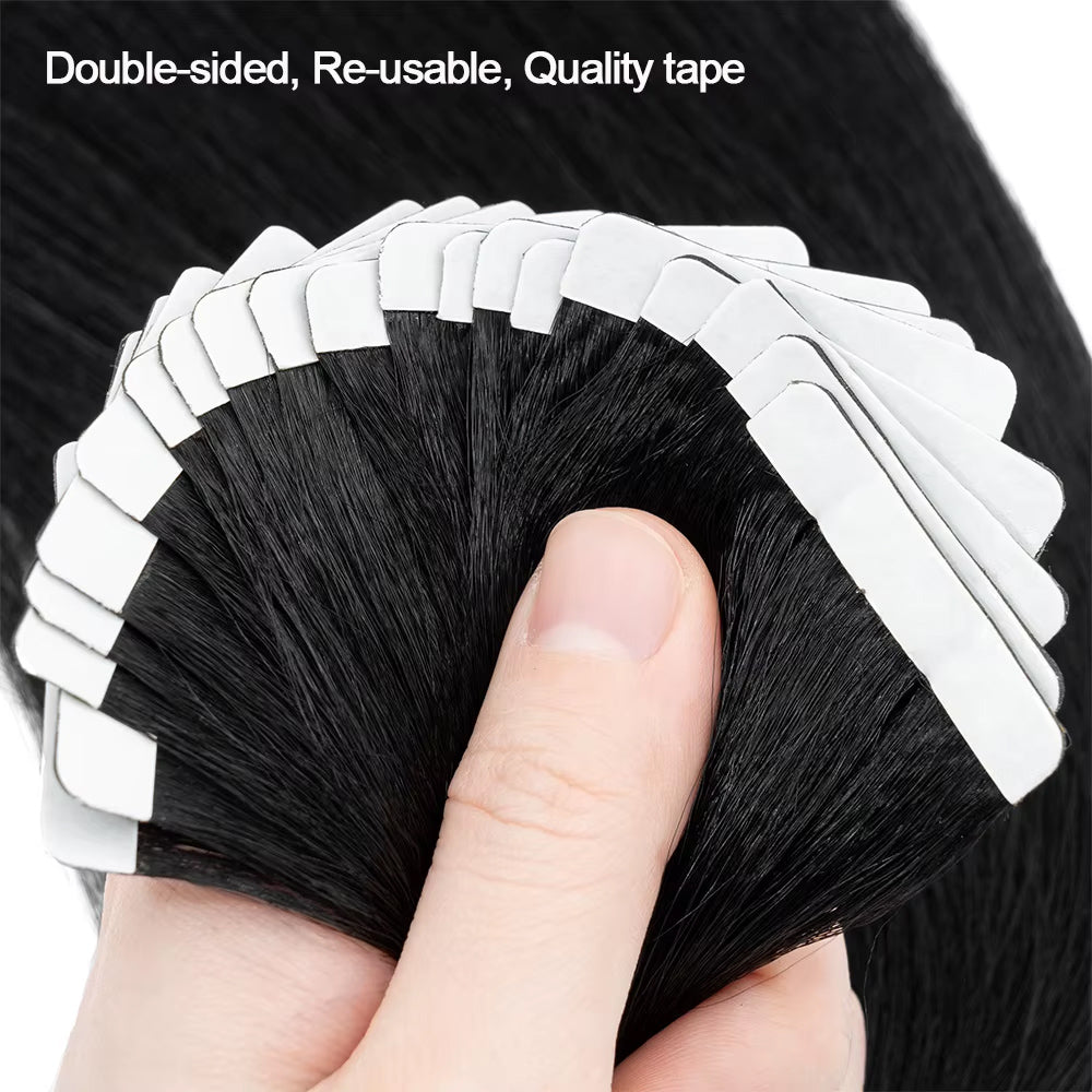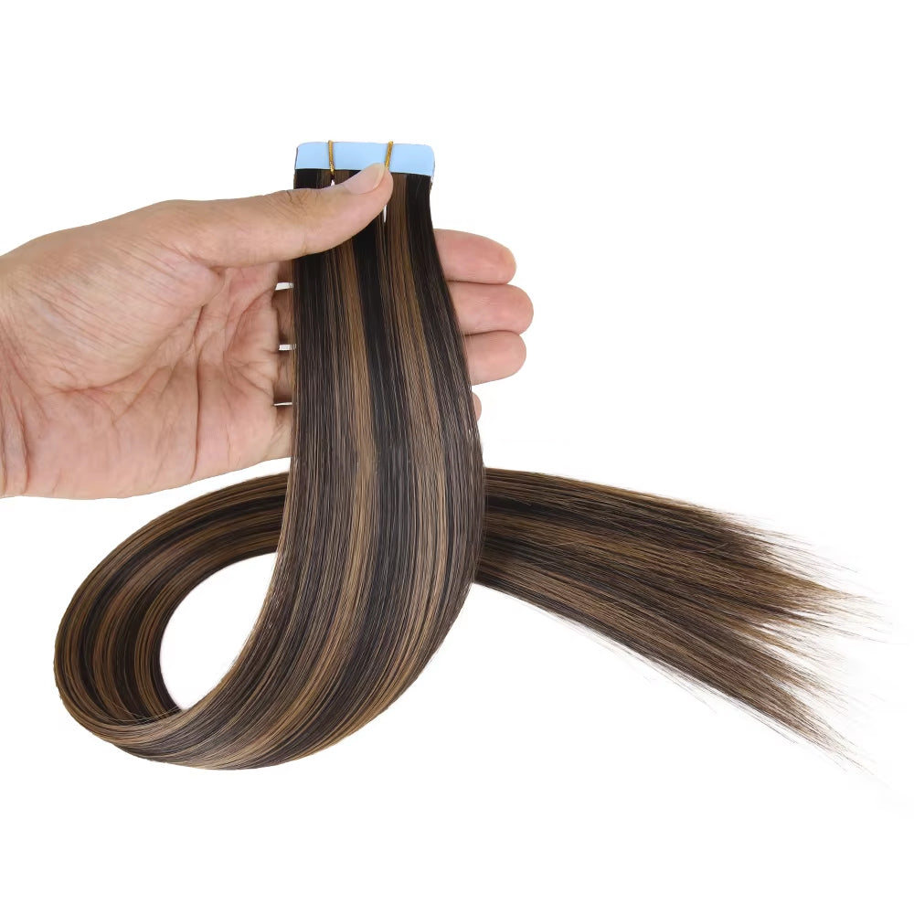 Tape-in Extensions for Girls & Women - Double Sided Tape Natural Straight Synthetic Soft & Silky Long Hair Natural Color Synthetic Hairpiece - 10 pc Set , Size = 20 Inch Seamless Tape-In Extensions by Ritzkart