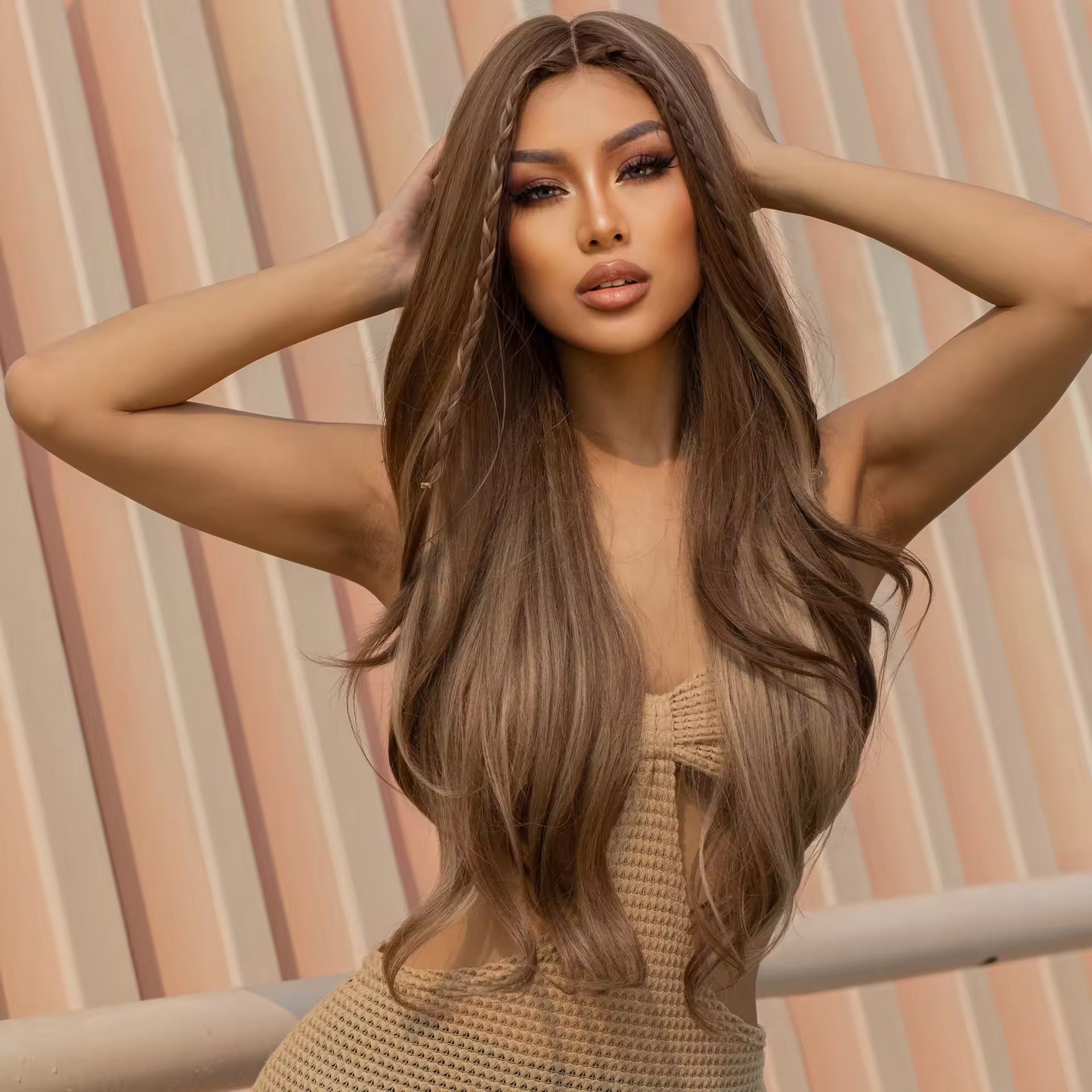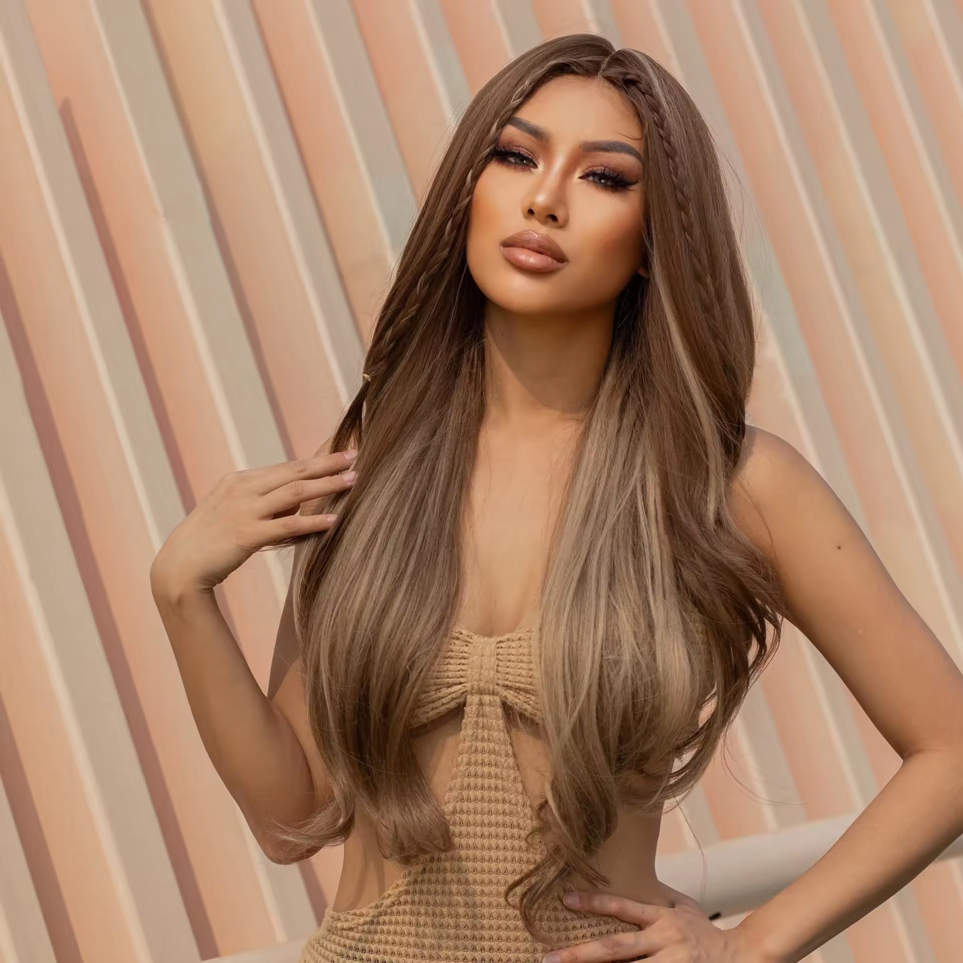 Elevate your hairstyle with our Transparent Body Wave Lace Front Wig, featuring a stunning blend of straight hair with highlight dyed accents. This synthetic wig combines the best of both worlds with its natural body wave texture and sleek straight style, perfect for adding a touch of glamour to any look.