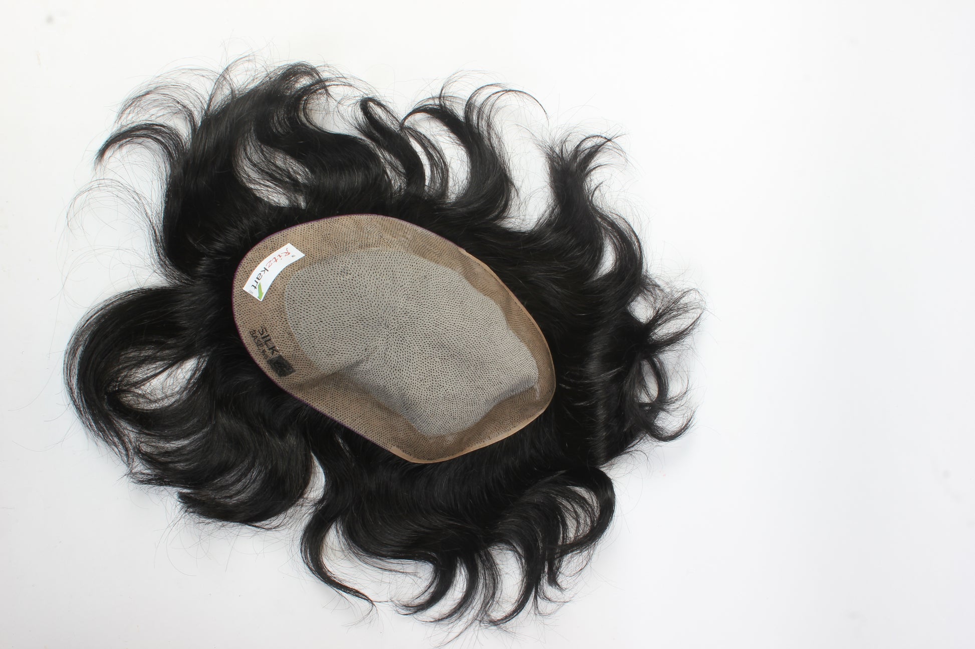 USA Silk Soft Base Human Hair Straight Men Toupee/hair Patch (Black)